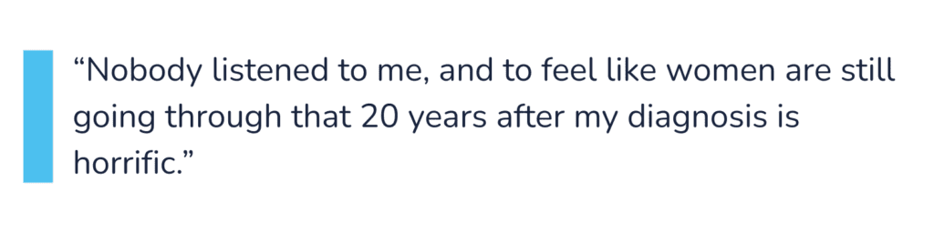 Michelle Bates described repeated dismissal by medical professionals over many years. Reflecting on her experience, she said: