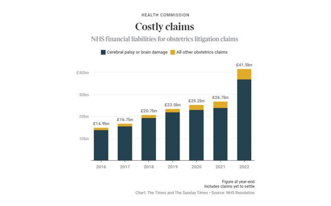 In total, NHS obstetrics-related liabilities reached £41.5 billion, with £36.8 billion linked to negligence causing cerebral palsy or brain damage.
